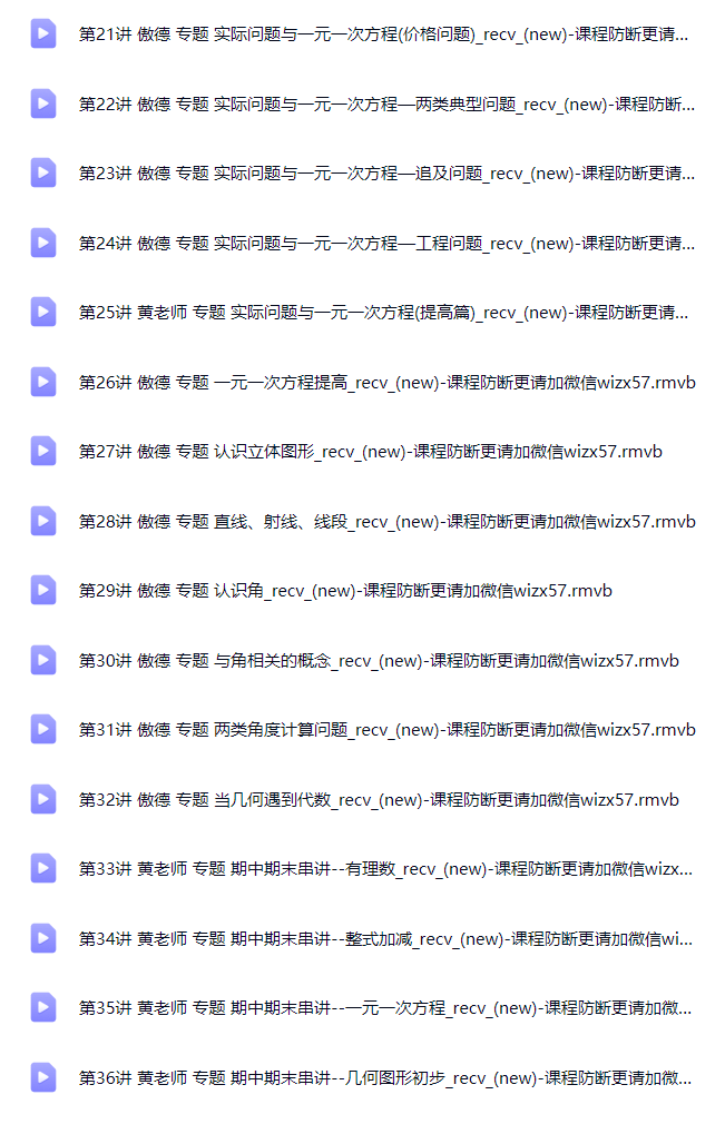 │ │ ├─ 第32讲 傲德 专题 实际问题与一元一次方程—两类典型问题_recv_(new).rmvb