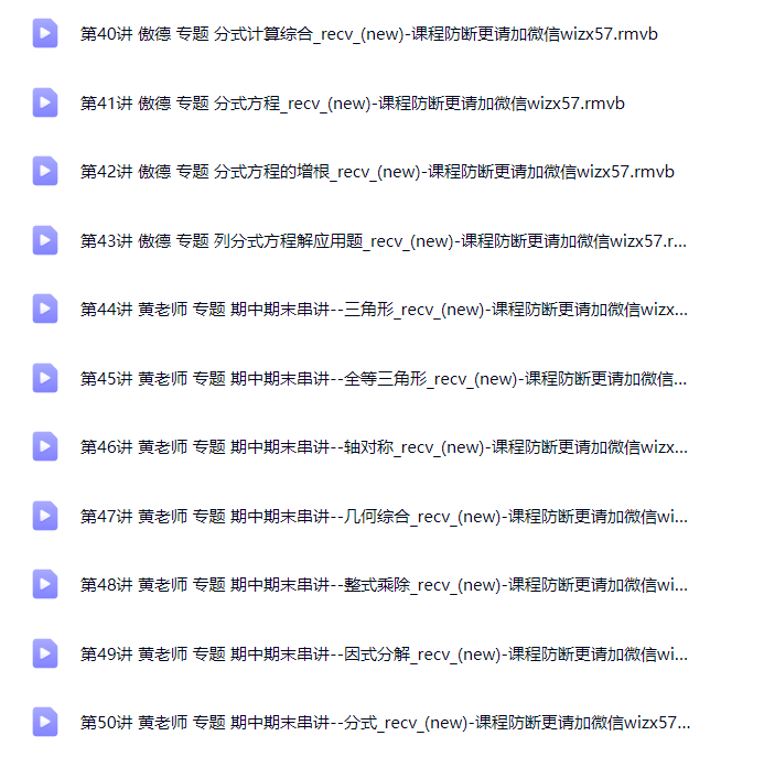│ ├─ 第41讲 黄老师 专题 期中期末串讲–分式_recv_(new).rmvb