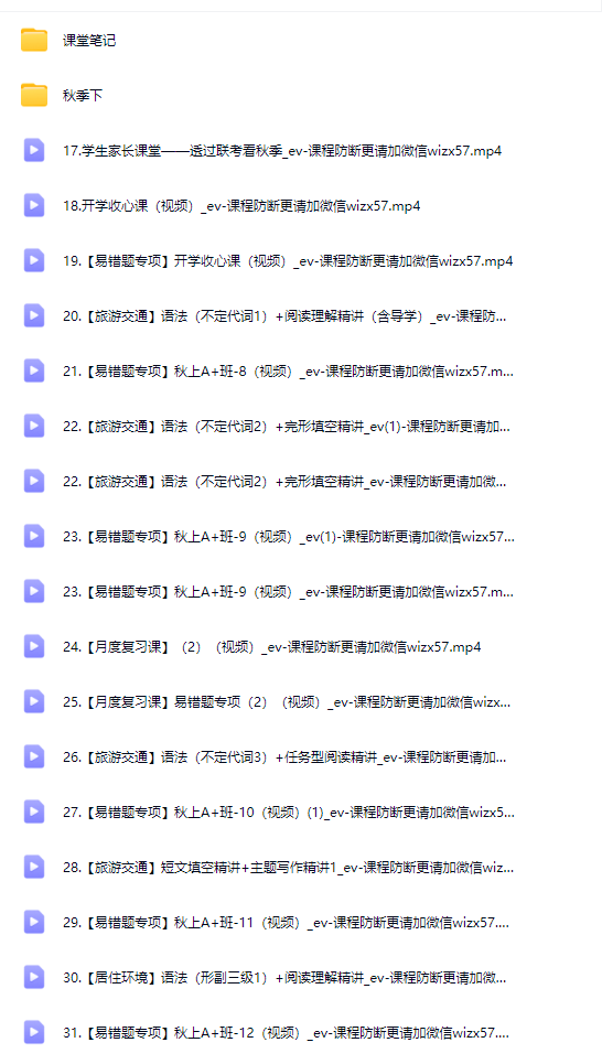 2024王凯皎初二英语a+培训班视频教程+课堂笔记+讲义(暑假班+秋季)【Dc-040】