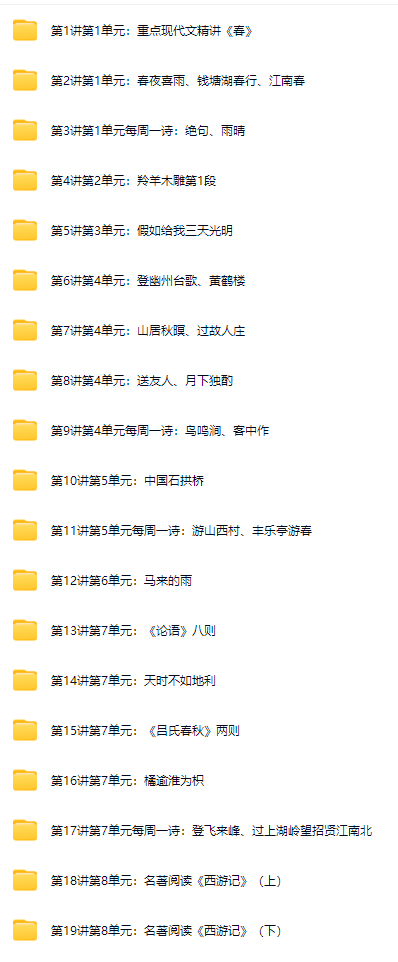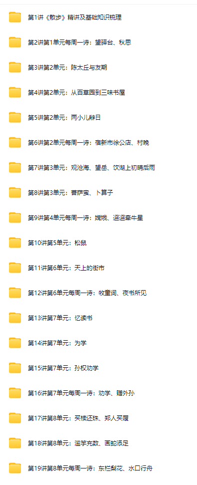 │ │ ├─ (1)第8单元每周一诗:东栏梨花、水口行舟第1段.mp4