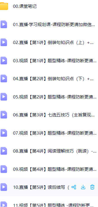 4. 极少数课程可能因为课程包含相关敏感内容,造成百度网盘分享链接失效,如遇到课程下载链接失效等,请联系在线客服获取新下载链接。